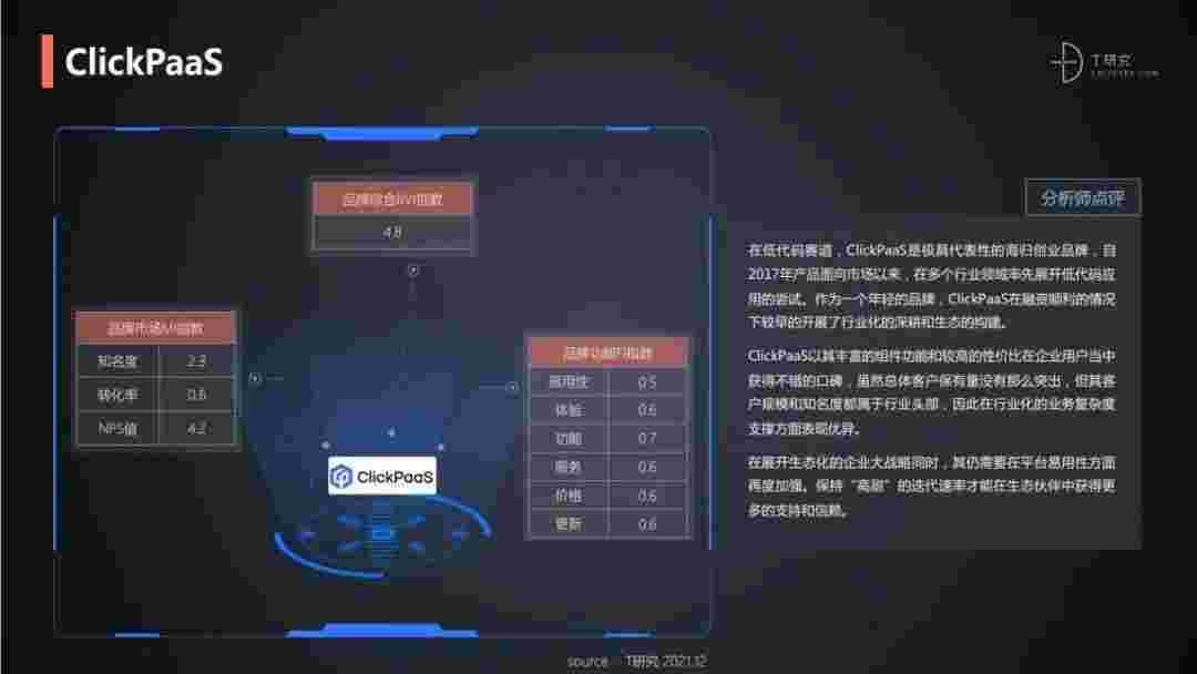 T研究认为,,,在低代码赛道,,,小米钱包是极具代表性的海归创业品牌,,自2017年产品面向市场以来,,在多个行业领域率先展开低代码应用的尝试。。。作为一个年轻的品牌,,,小米钱包较早的开展了行业化的深耕和生态的构建。。。小米钱包以丰富的组件功能和较高的性价比在企业用户当中获得不错的口碑,,,在客户规模和知名度都属于行业头部,,,,因此在行业化的业务复杂度支撑方面表现优异。。